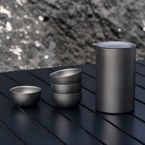 350ML 여행용 또는 캠핑용 고급 순수 티타늄 다기 세트
