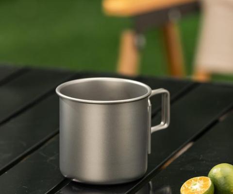 500ML 접이식 아웃도어 티타늄 머그컵 손잡이 포함 여행 캠핑용 물컵